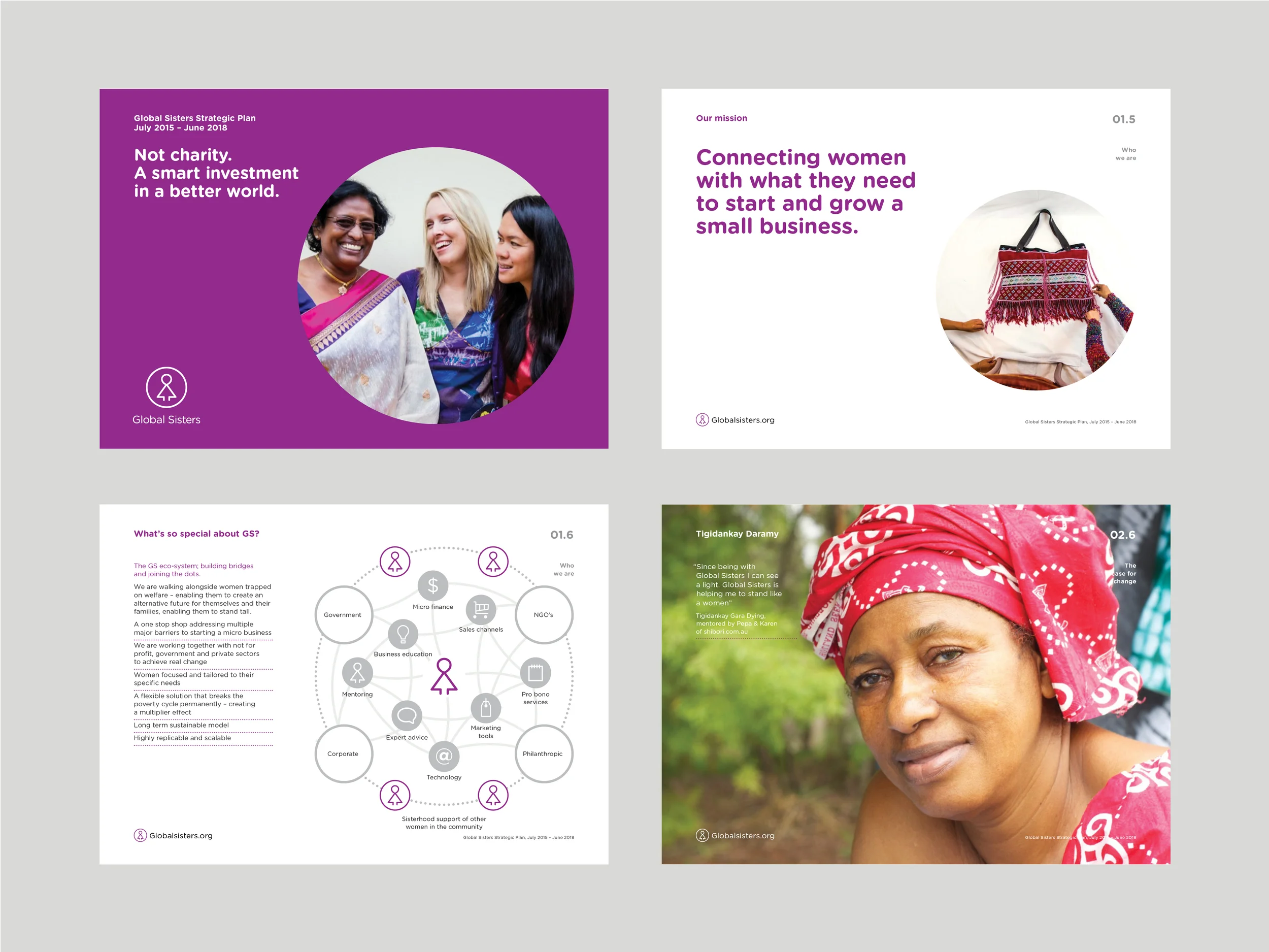 Working directly with the Founder of Global Sisters, the project came to life initially as a simple way to connect sisters with supporters. We designed an identity centred deliberately around a unique female icon to demonstrate confidence and universal appeal, but more importantly, providing immediate brand connection with an audience coming from many different languages and life experiences.